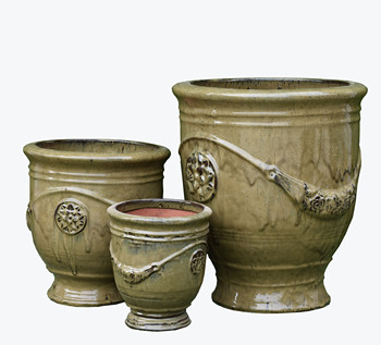 Venta al por mayor macetas de cerámica esmaltadas al aire libre maceta de vivero en forma de diseño para uso doméstico macetas de arcilla para aplicación en el jardín